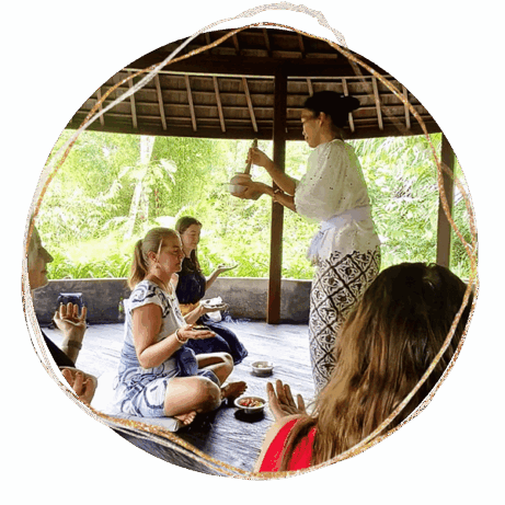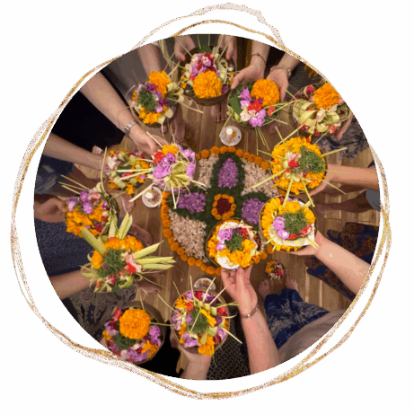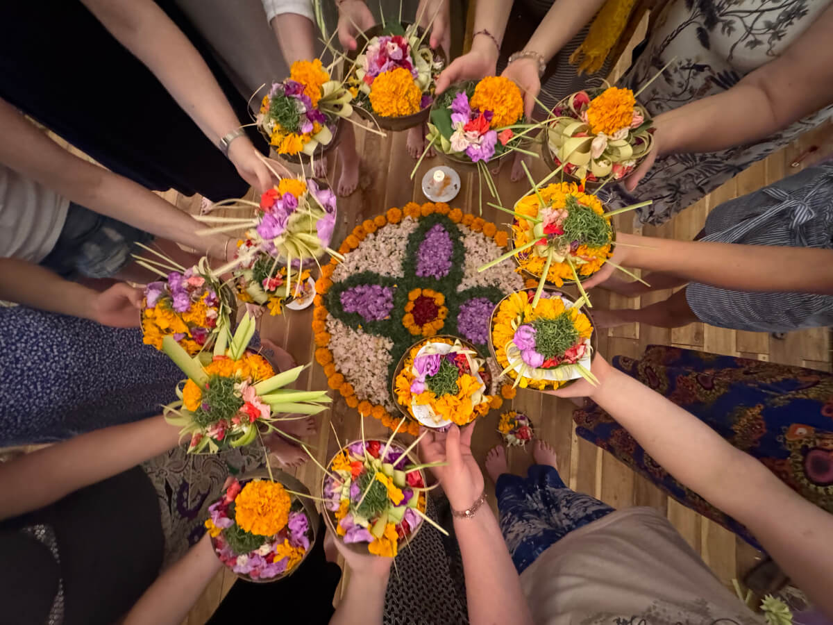 Spoločne si pripravíme tradičné balijské obetinky „Canang“ z palmových listov, kvetov a vonných tyčiniek, ktoré Balijčania každý deň prinášajú ako prejav vďačnosti a úcty k životu. Počas tejto aktivity sa ponoríme do miestnej kultúry a symboliky jednotlivých prvkov a zažijeme chvíľu spomalenia, tvorivosti a vedomého bytia v prítomnosti.