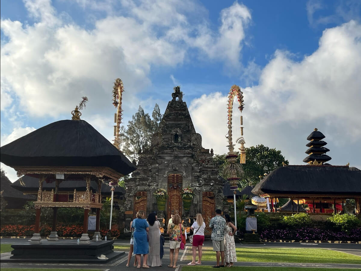 Čaká ťa aj fakultatívny celodenný výlet na malebnú Virgin Beach, kde môžeš nasávať slnečné lúče, cítiť piesok medzi prstami a nechať sa unášať šumom oceána. Po ceste navštívime Goa Lawah, posvätnú jaskyňu netopierov, ktorá pulzuje energiou ostrova. Ďalej sa zastavíme v tradičnej výrobni morskej soli, kde môžeš vidieť starodávne techniky a vnímať vôňu mora.